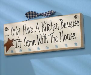 Myślę, że ludzkości, która ma jeszcze tylko dwie minuty do końca świata jaki znamy, nie zaszkodziłaby książka kucharska dla debili kulinarnych (takich jak ja) i może świat byłby bardziej oddalony od zagłady. Póki co, pełna pokory, prezentuję obrazek dnia („Mam kuchnię tylko dlatego, że była razem z domem”) i dziękuję Ani.