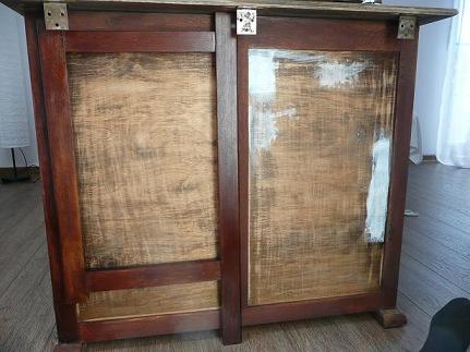 Po wyczyszczeniu biedny, obdarty ze skóry brzydal stał bardzo długo i przeszkadzał. Omijałam go wielkim łukiem przez kilka miesięcy, jakby był chory na grypę jelitową i do tego miał trądzik. Nie miałam żadnego pomysłu, który zmieniłby to drewniane nieszczęście w przedmiot użytkowy. Po tych kilku miesiącach zaświtał mi pomysł, ale zaraz się schował. Po następnych kilku miesiącach, kiedy nie wymyśliłam niczego nowego, postanowiłam wrócić do pierwotnej idei.