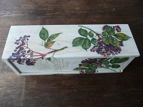 No i nie mogę zapomnieć o jesiennej Prowansji. Siedzi mi w głowie i nie chce wyleźć. I tak mi się kołacze ta lawenda i kamienne domy i dęby przy drogach, zapach ziół i szare skały. Kiedy więc znalazłam stare pudełko na wino (albo inne trunki), takie w powyłamywanymi nogami (w przenośni), to… więc kiedy zobaczyłam to pudło, to od razu wiedziałam co z nim zrobię: